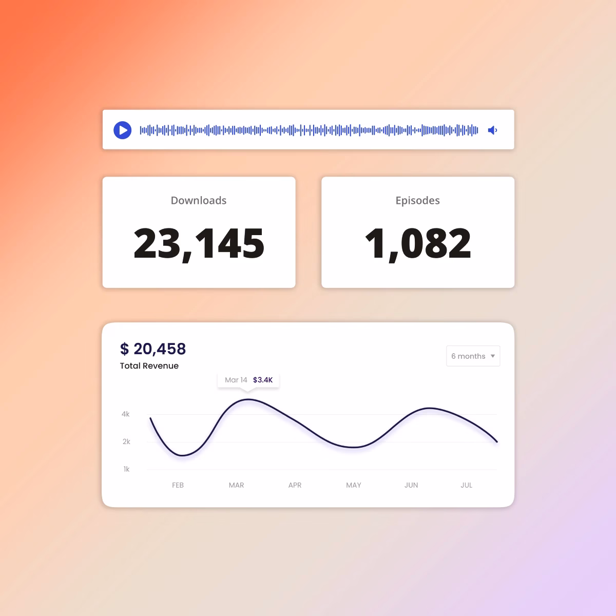 Track downloads, subscribers, listening apps, and engagement. See how each episode performs and use insights to grow.