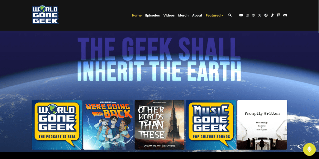 - The homepage features recent episodes, a voicemail widget button, social & subscribe icons, and more.