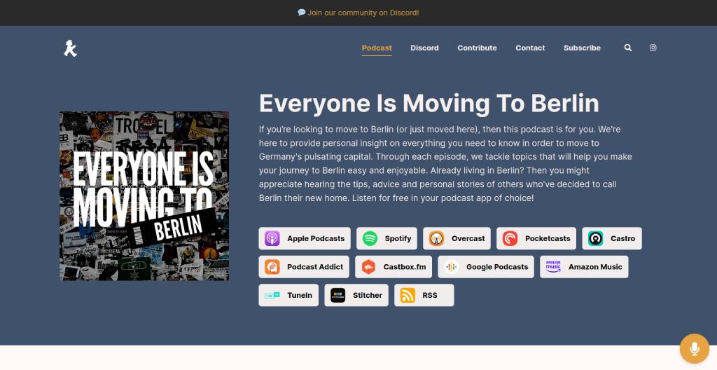 - Really nice banner on the top of the homepage along with brief info about the podcast and a button.
